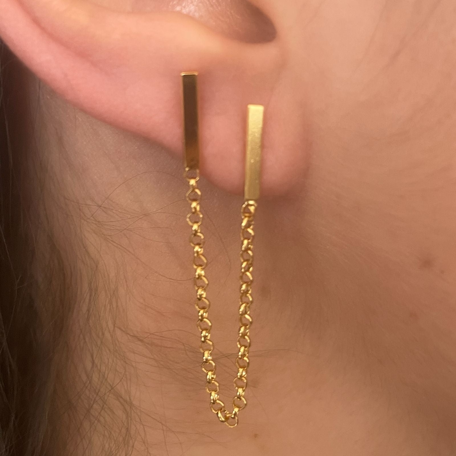 Elegante e versátil, o Brinco Bridge Dois Furos traz sofisticação ao seu visual com seu banho de ouro 18k. Perfeito para ocasiões especiais ou para elevar seu look do dia a dia, este brinco combina beleza atemporal com acabamento premium que valoriza sua beleza natural. Necessário 2 furos na mesma orelha.